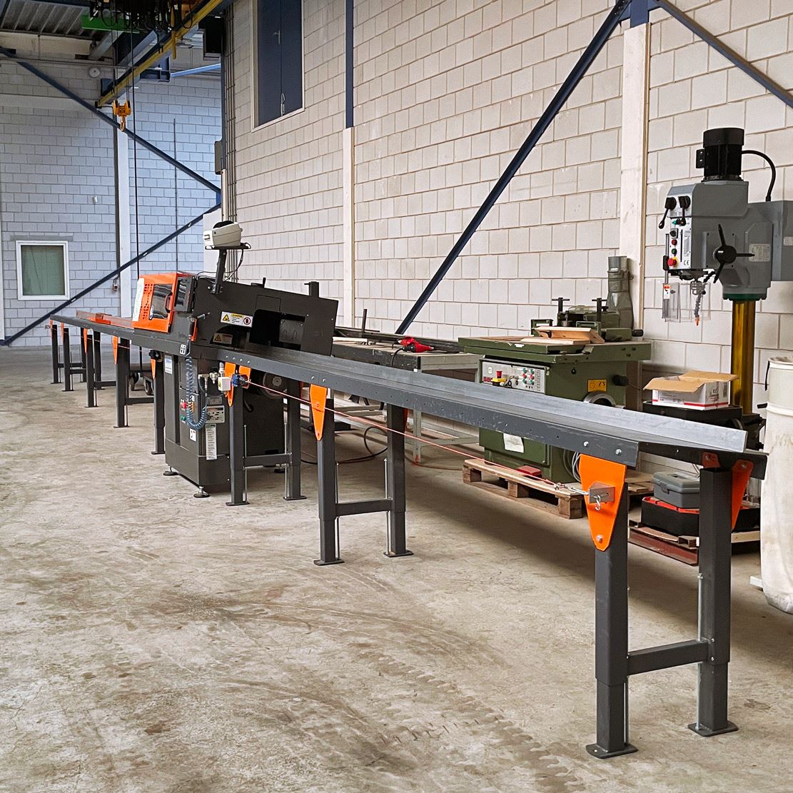 Invoerzijde: TigerStop opduwer 6m op rollentafel 6,6m;